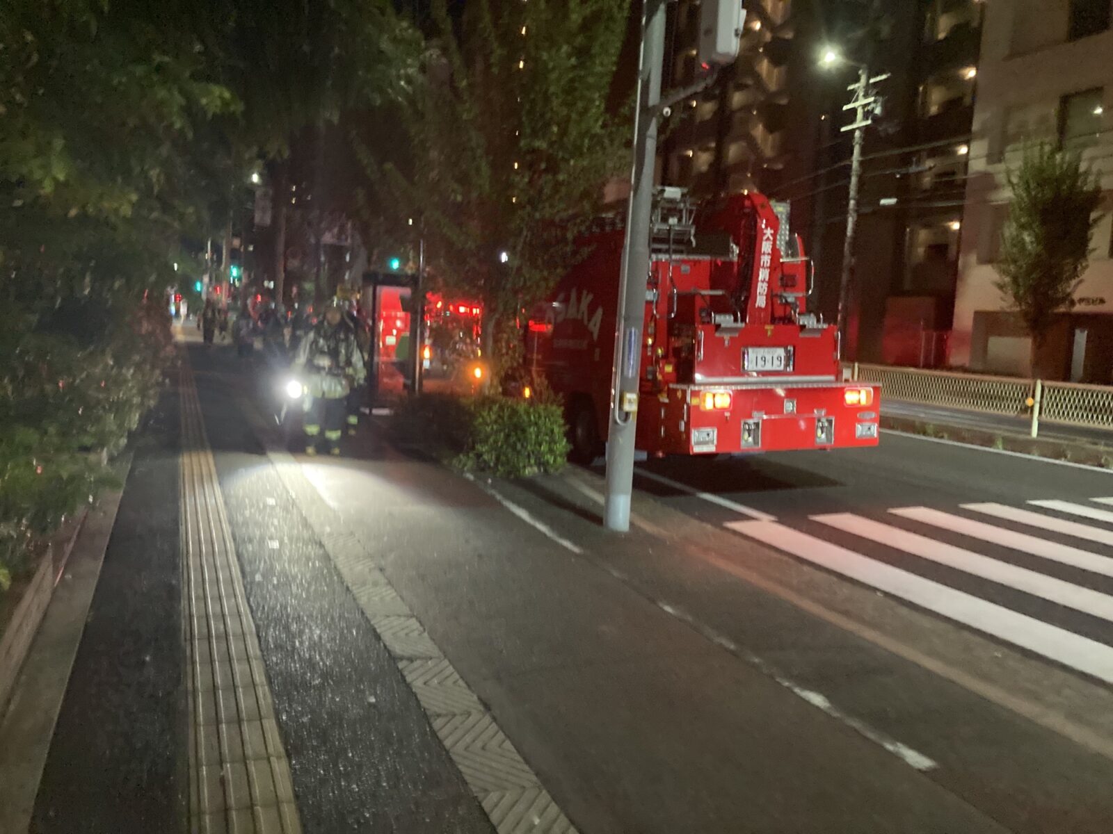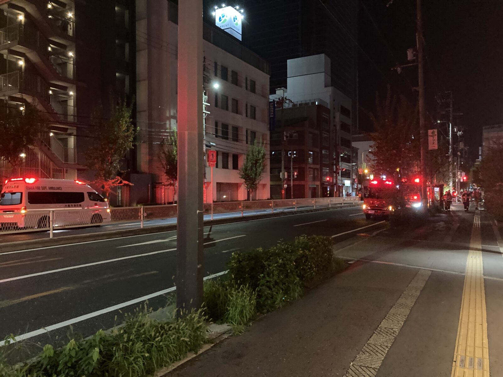 2025年10月13日(月)の23時45分頃、十三駅東口側の淀川通り沿いに、かなりの数の消防車や救急車が集合していたようです。