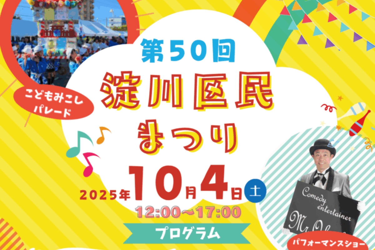 2025年10月4日(土)、今年も夏の終わりの淀川区の恒例行事「淀川区民まつり」が野中南公園&淀川区民センターにて開催されます!今年は淀川区民まつりも第50回という節目となっており、いつも以上?に華やかかつ賑やかな催しとなっているようですよ!