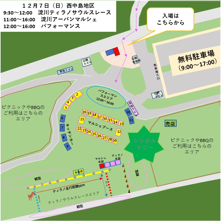 2025年12月7日(日)は淀川河川敷西中島地区にて、今年最後の野外マルシェイベント「淀川アーバンマルシェ」が開催予定(雨天中止)です!今回の「淀川アーバンマルシェ」は人気イベント「淀川ティラノサウルスレース」が同時開催!となっています!