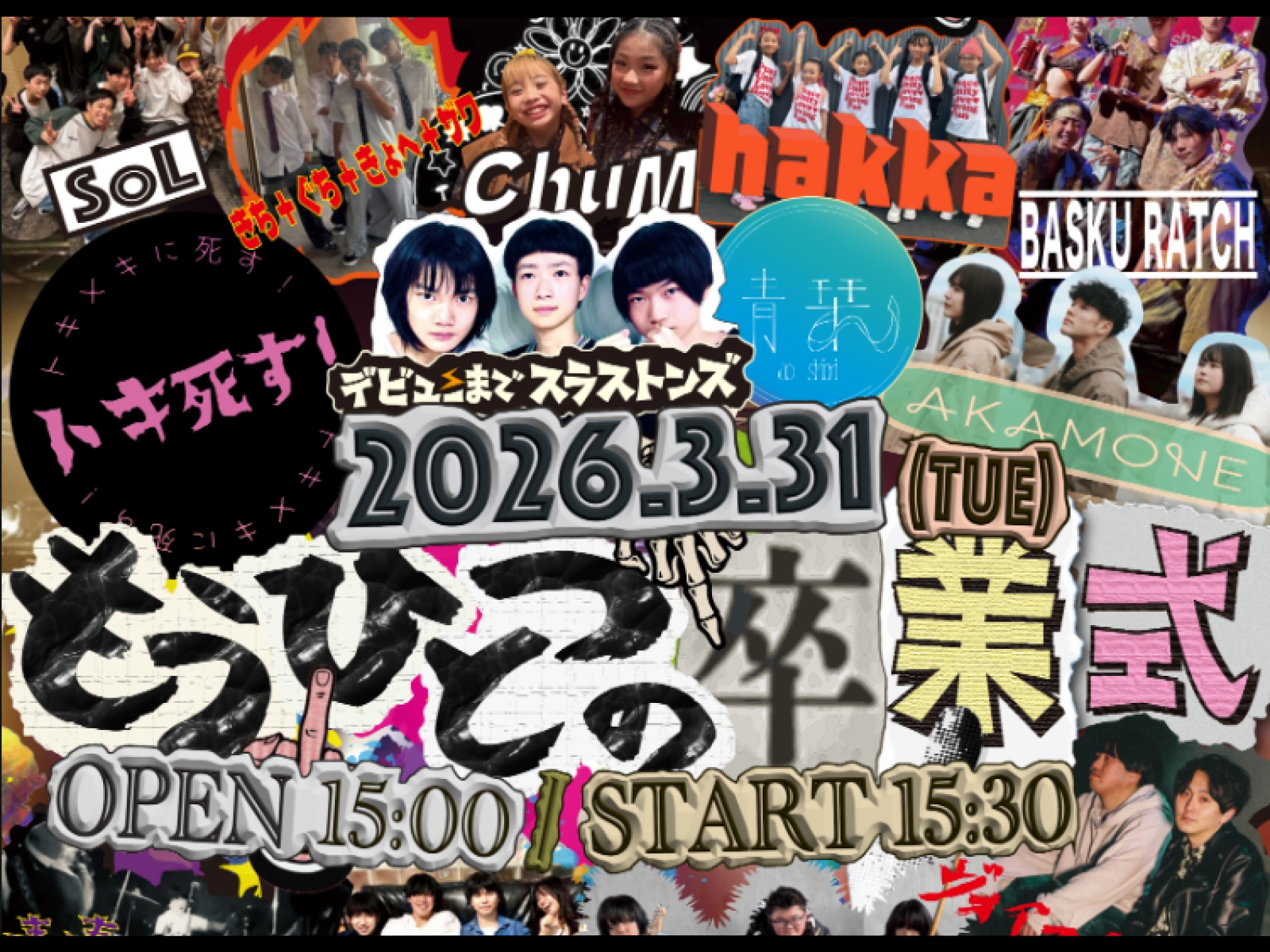 という訳で、現役中学生スリーピースバンド「デビューまでスラストンズ」が「246ライブハウスGABU」で開催予定となっている自主企画ライブ「もうひとつの卒業式」。2026年3月31日(火)開催となっていますので、是非お時間のある方は、興味本位の気持ちと1500円を握りしめて(実際には↓リンクからチケットを予約して)、「246ライブハウスGABU」へ足を運んで頂ければと思います!