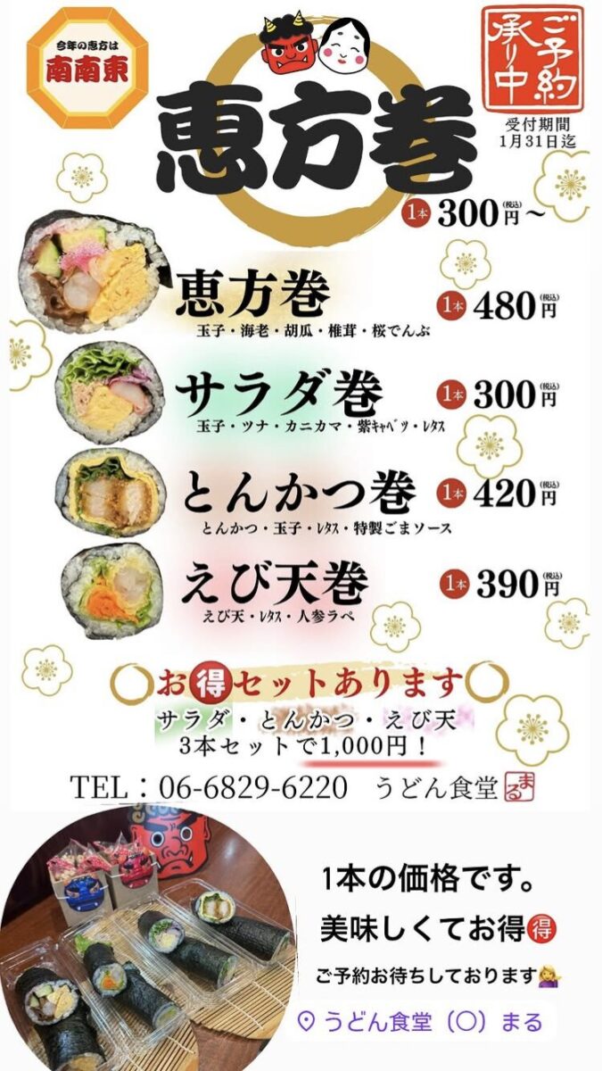 2026年も開始して早くも3週間が経過しました!早い!そして後2週間後の2月3日(火)には節分がやってきます!早い!節分といえば恵方巻。今年の恵方は南南東で、この方向に向いて願い事をしながら無言で一本まるごと食べると縁起が良いとされており、我らが十三でも様々な店舗で、オリジナル色溢れる恵方巻が販売されるようです。今回はそんな十三駅周辺で予約が可能な恵方巻の特集です。