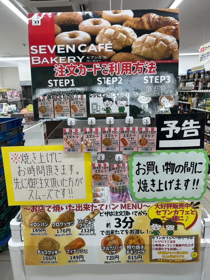 そんな焼きたてパンやピザ等が食べられるセブンイレブンさんが展開する「SEVEN CAFE BAKERY(セブンカフェベーカリー)」。十三駅周辺エリアにはセブンイレブンさんも多いですが、こちらのサービスの対象店舗となるのは2025年10月現在では今回紹介した「セブンイレブン大阪十三本町一丁目店」さんのみとなっていますので、パンに目が無い!という方は是非、「セブンイレブン大阪十三本町一丁目店」さんで焼きたてパン&ピザのサービスを活用して頂ければと思います!