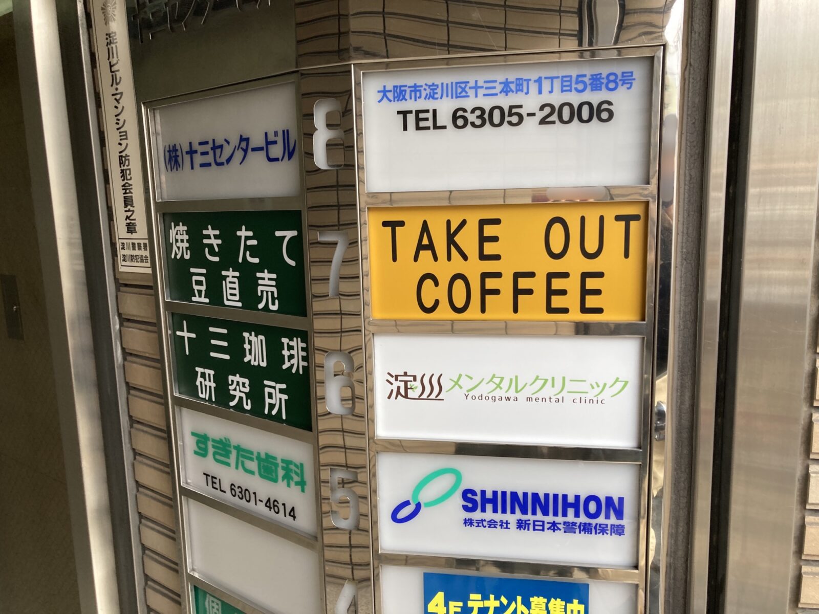十三西口交差点すぐ近く、十三センタービルの6階7階に、焼きたて豆販売のテイクアウト販売店「十三珈琲研究所」さんが2025年6月1日(日)より新規オープンされています。