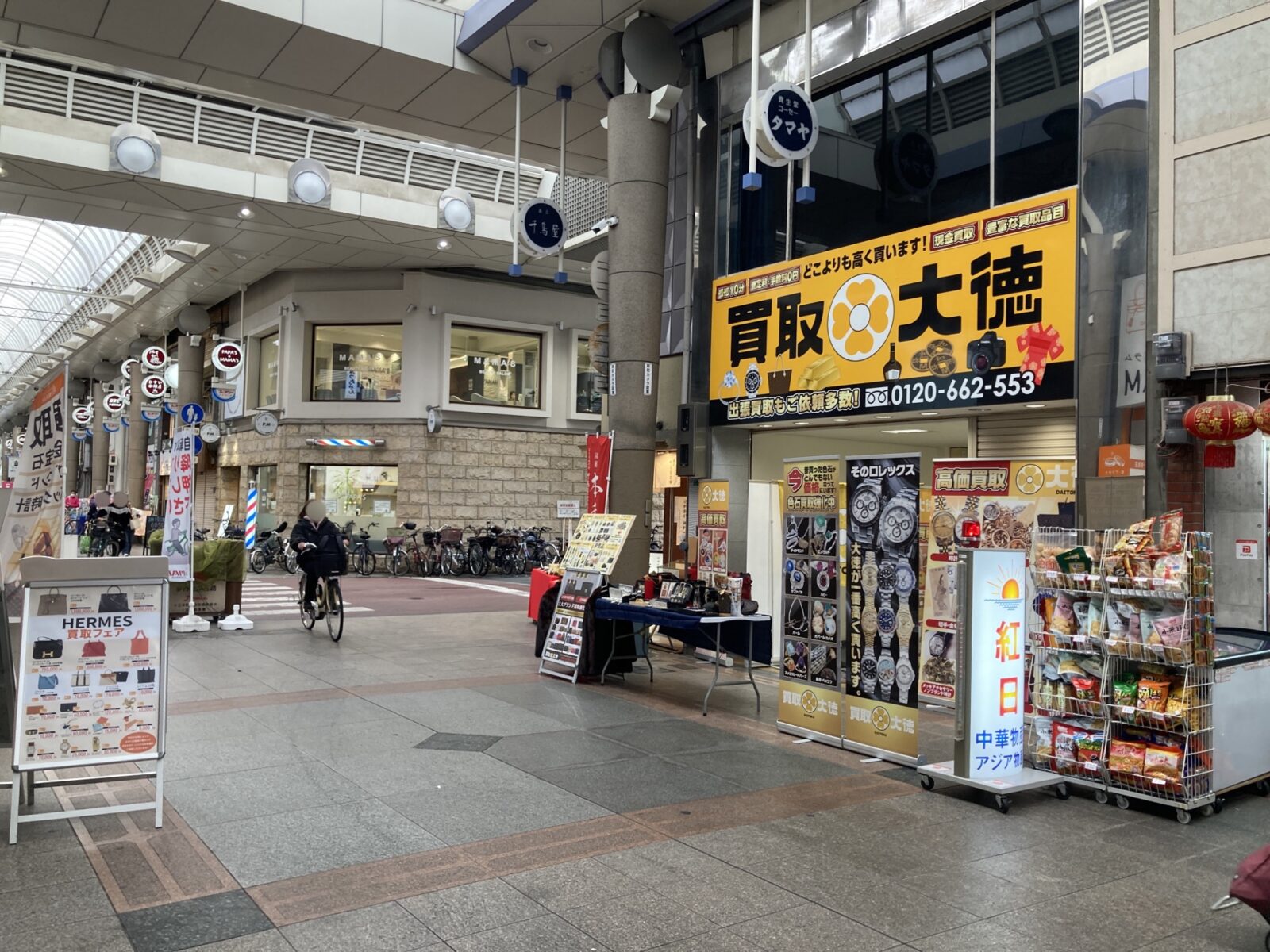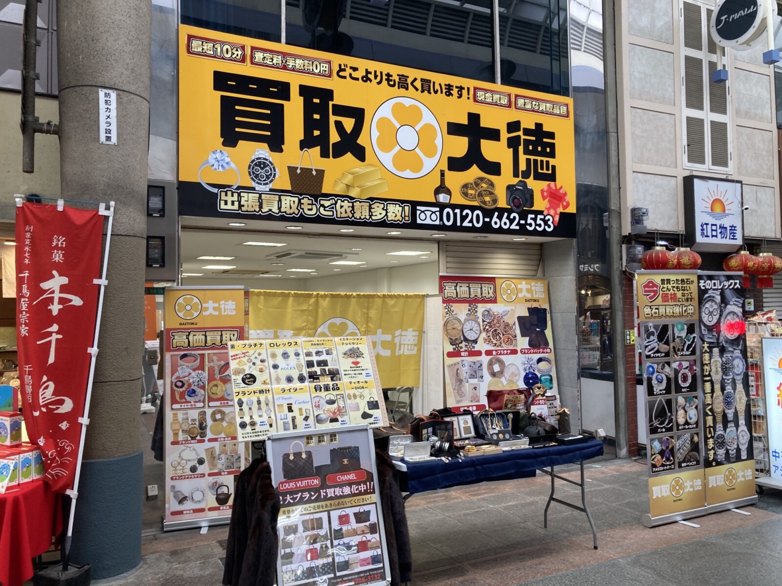 という訳で、十三本町商店街(J-MALL)に新たにオープンした「買取大徳 十三本店」さん。ご自宅に貴金属やブランド商品が眠っていて、現金がご入用となる方、相談や査定は無料となっていますので、是非気軽にご利用、査定相談をしてみてはいかがでしょうか!?