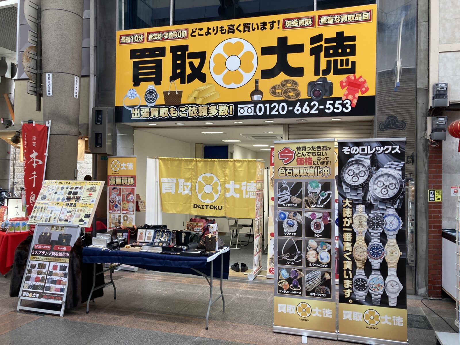 という訳で、十三本町商店街(J-MALL)に新たにオープンした「買取大徳 十三本店」さん。ご自宅に貴金属やブランド商品が眠っていて、現金がご入用となる方、相談や査定は無料となっていますので、是非気軽にご利用、査定相談をしてみてはいかがでしょうか!?