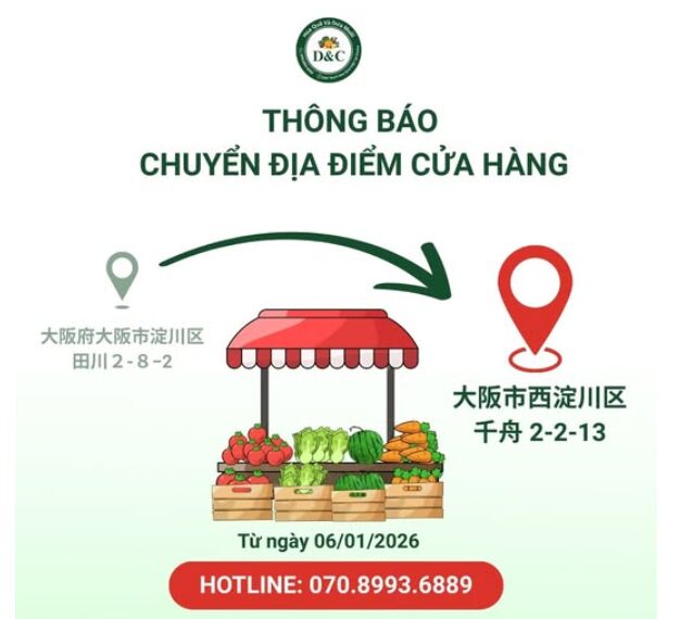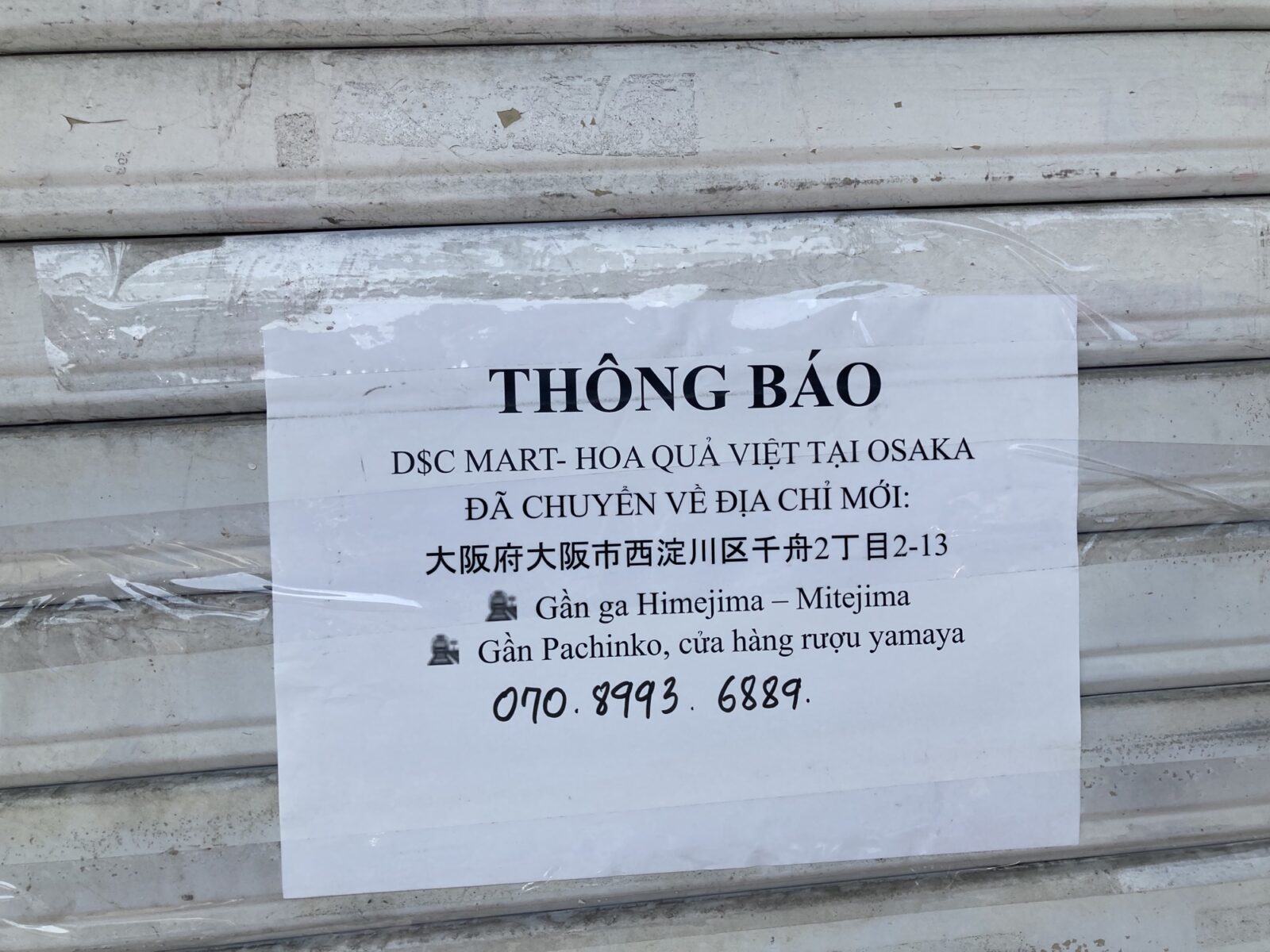 店舗前には移転をアナウンスする貼り紙が掲示されています。ベトナム語なので、詳細はよくわかりませんが、端的にいうと、西淀川区千舟2丁目のほうへ移転しましたよという内容になっているようです。公式のFacebookにも、移転を告げる投稿が行われていました。
