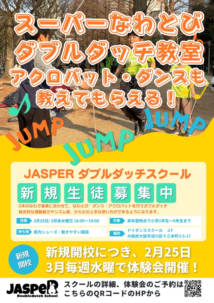 という訳で、十三本町3丁目エリア、ドイダンススクールの2階にて新たな新規生徒募集を開始されているダブルダッチのスポーツ教室「JASPER DOUBLEDUTCH SCHOOL(ジャスパーダブルダッチスクール)十三校」さん。興味をもっていただけた方は、是非お問合せをしていただければと思います!