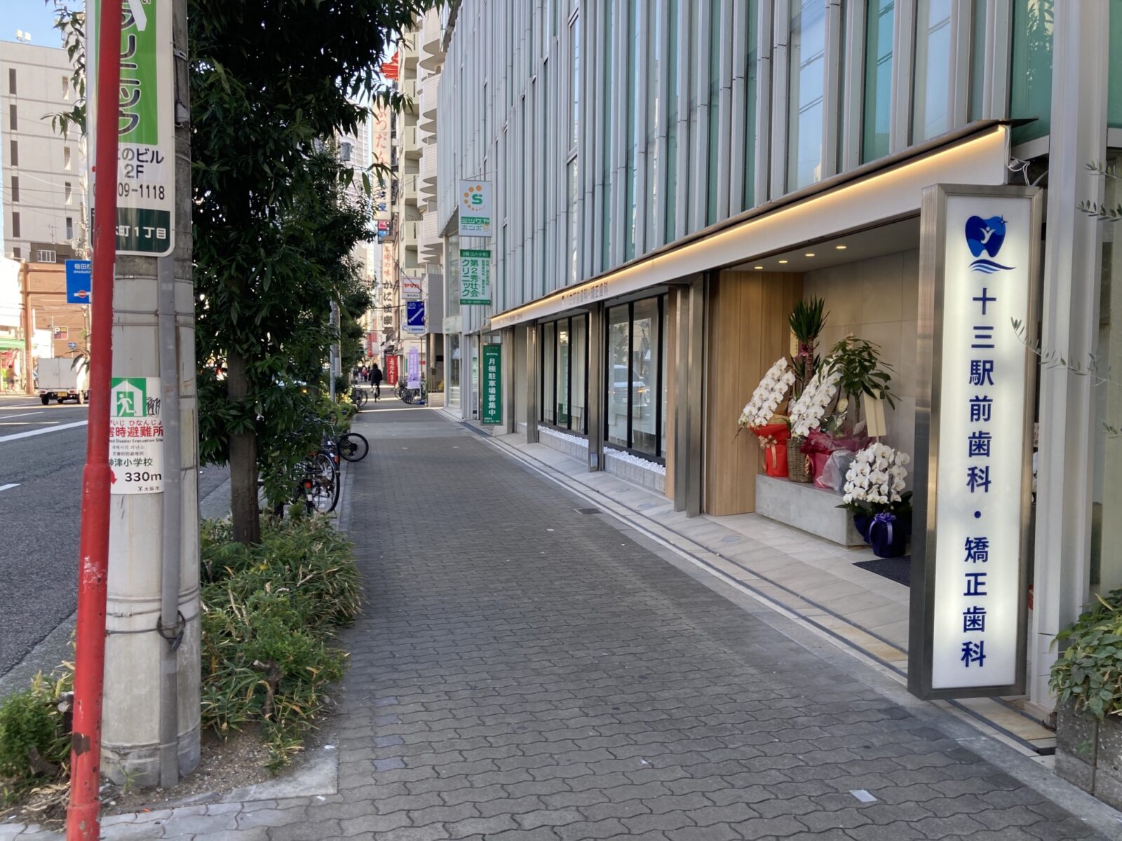 十三本町1丁目エリア、十三沿いの洋菓子店「お菓子のアトリエ ハンブルグ 十三本店」さん跡地に、歯科医院「十三駅前歯科・矯正歯科」さんが2025年12月2日(火)より新規開院されています。