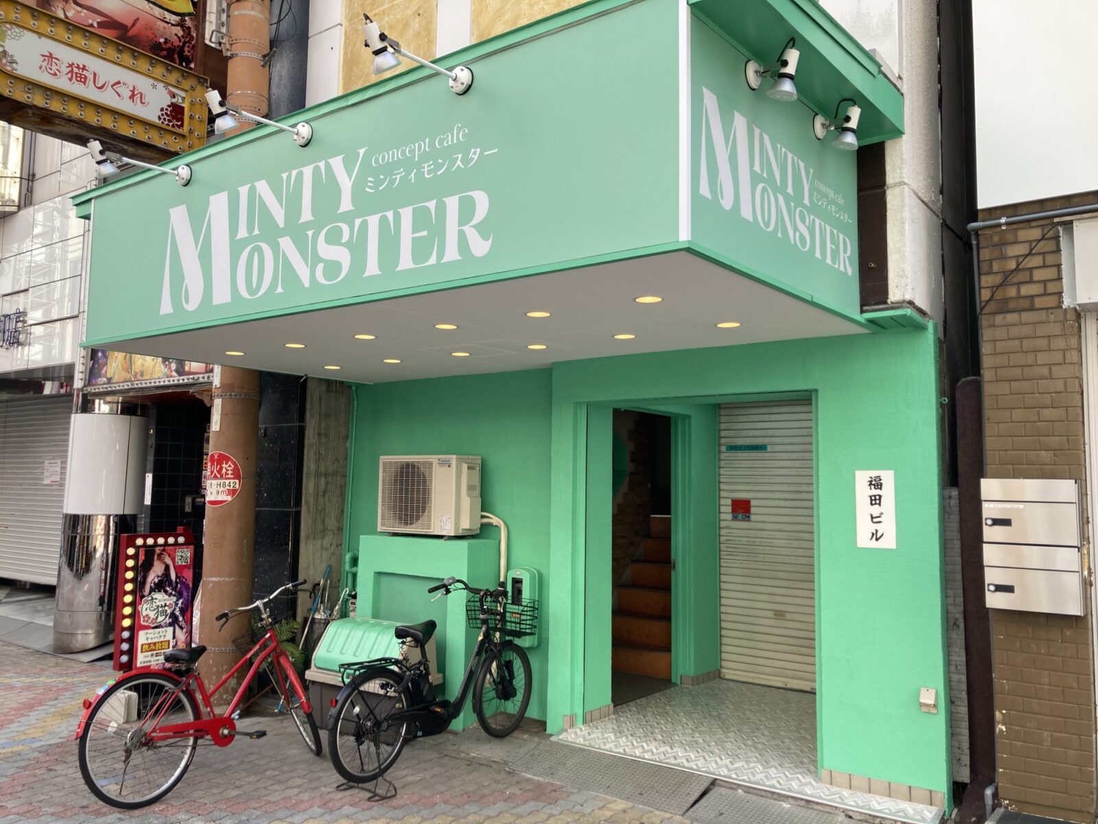 ミントグリーンのパステルカラーが目立つ外観のこちらのお店は、可愛いメイドのモンスター?さん達が多数在籍する、リーズナブルで毎日通えるご褒美コンカフェになっているそうです!