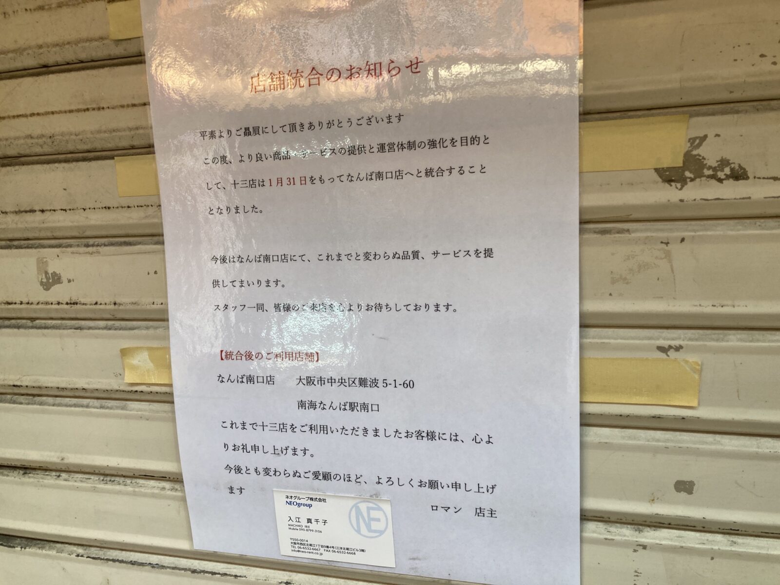 阪急十三駅西口改札出口から徒歩10秒、十三しょんべん横丁にあった立ち食いスタイルの油そば専門店「スタンド油そばロマン 十三店」さんが2026年1月31日(土)をもって閉店、今後は「ロマン なんば南口店」さんと店舗統合する形で営業されるということです。