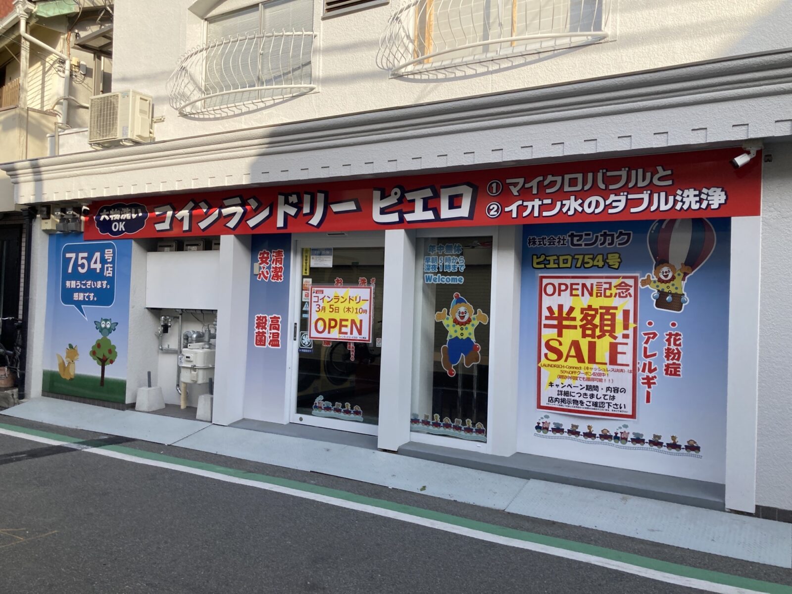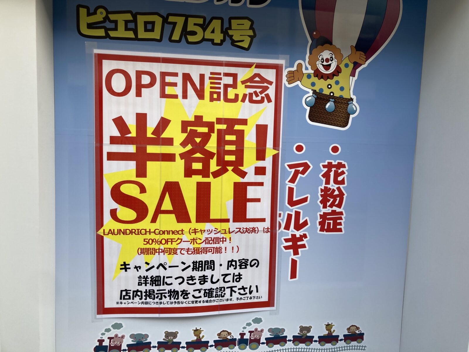 「コインランドリーピエロ 754号 十三東店」さんではグランドオープンを記念して、2026/3/5~2026/4/3の約1ヵ月間、利用価格が半額になるキャンペーンを実施されています。