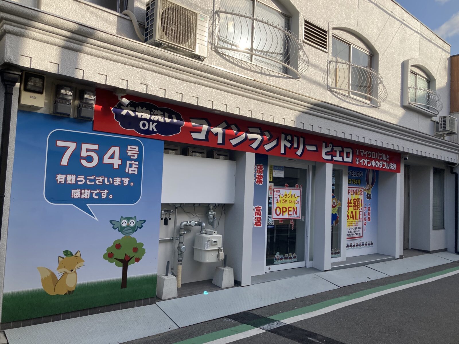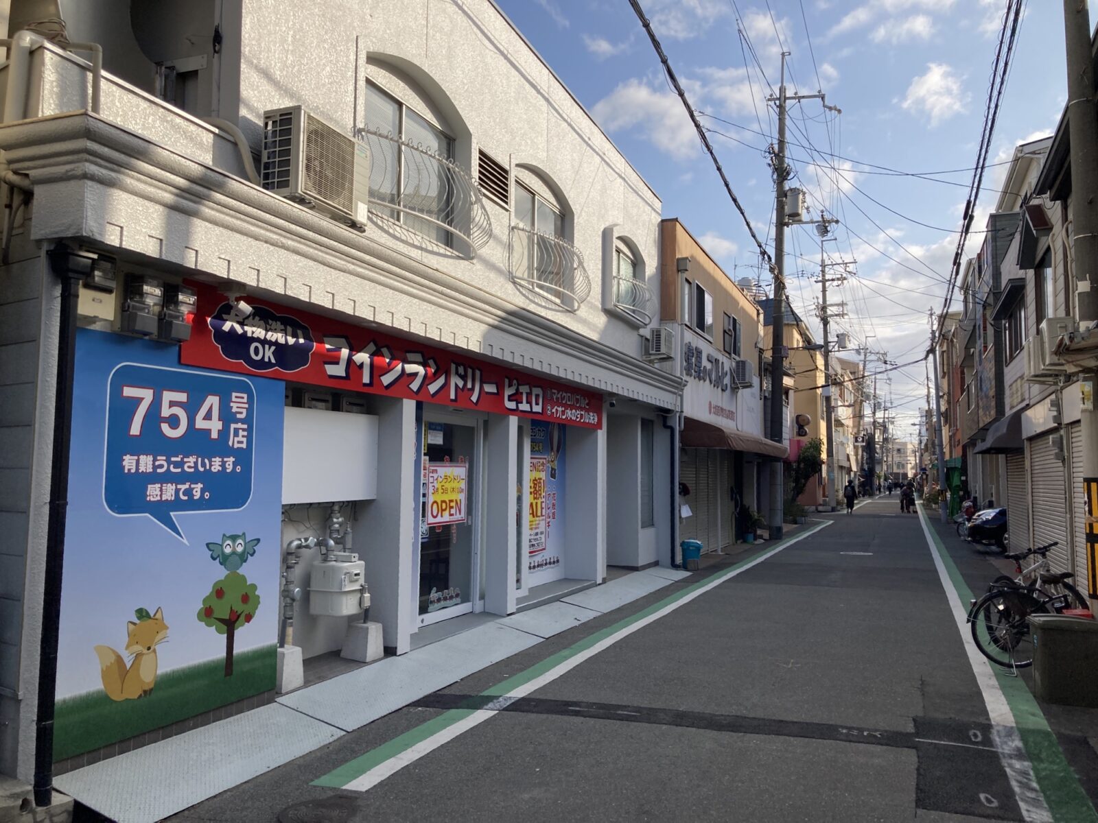 という訳で、十三東本通商店街(つばめ通り商店街)に新たに誕生したコインランドリー「ピエロ 754号 十三東店」さん。雨の日や、大量の洗濯物をこなさないといけない場合等、何かと便利に利用できるコインランドリー店となっておりますので、近所にお住まいの方は是非普段からご活用いただければと思います!