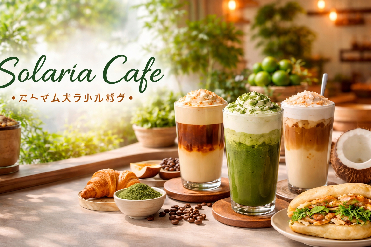 「SOLARIA Cafe&Lounge」さんは、ベトナムの本格コーヒー文化を心地よいカフェ空間で楽しめるお店になっています。香り高いベトナムコーヒーはもちろん、人気のバクシウ(コンデンスミルクをたっぷり加えたベトナムの甘くて冷たいミルクコーヒー)や、卵黄を使った珍しいエッグコーヒー、定番の抹茶ドリンクやハーブティーまで、その人個人に合わせた素敵なドリンクを数多く取り揃えておりますよ!ドリンクにあう手作りデザートや、小腹が空いた方にはバインミー等のアジアンフードの準備もあるので、休憩がてらの利用だけでなく、お喋りしたい時のスポット、小腹を満たしたい時のお店としても、重宝しそうですね!