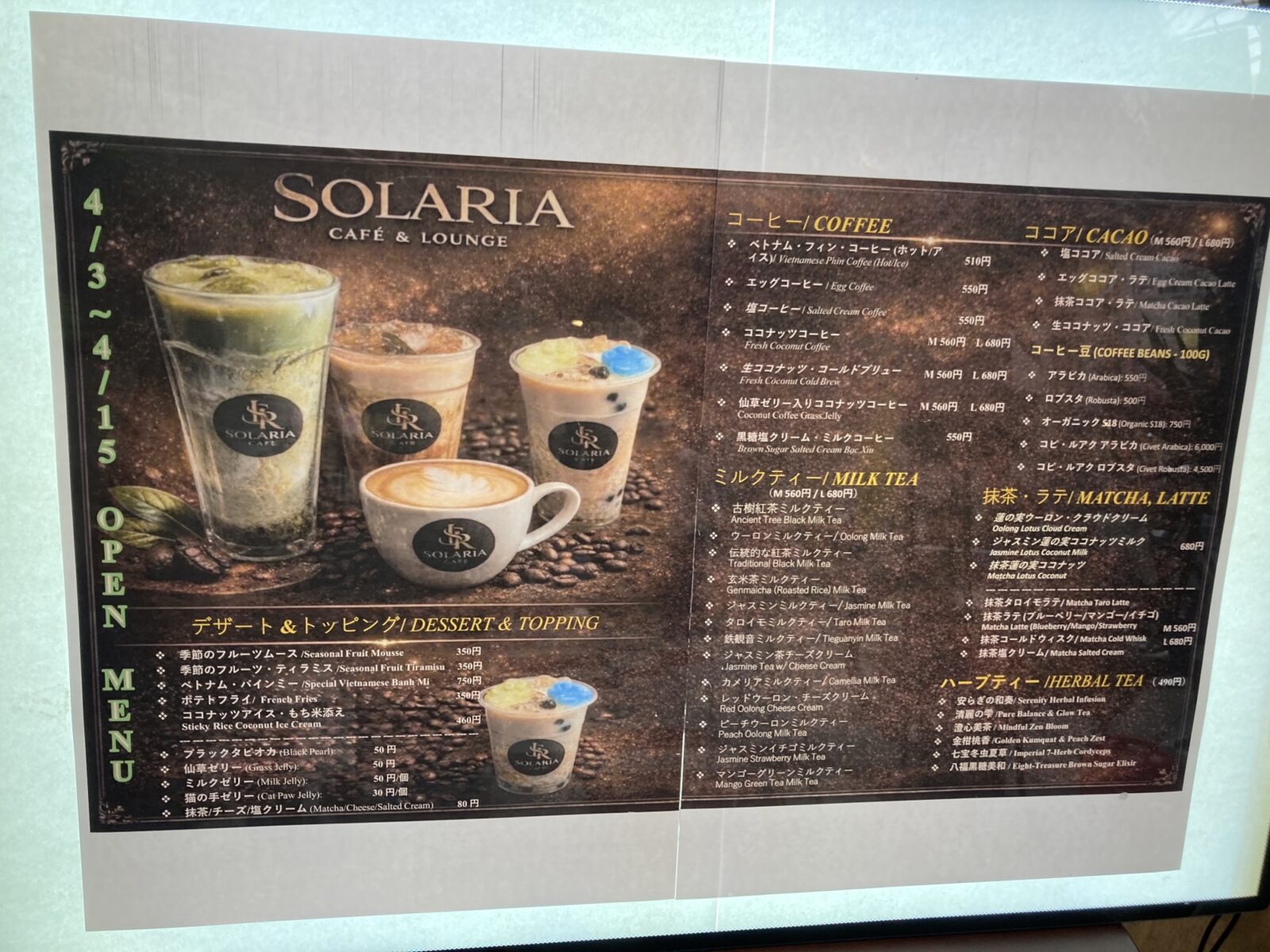 十三元今里商店街(十三もといまロード商店街)にベトナム珈琲を中心とした様々な珈琲やドリンクが楽しめるカフェ&ラウンジ「SOLARIA Cafe&Lounge(ソラリア カフェアンドラウンジ)」さんが2026年4月上旬より新たにオープンしています!