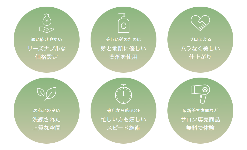 なんと、根元染めは2,000円から、全体染めは3,000円からという驚きのお手頃価格!しかも、初回来店のお客様はさらにお得に利用できるキャンペーン(初回2,000円〜)も実施されています。この価格なら、生え際が気になった時に我慢せずにサッと染めに行けますよね。