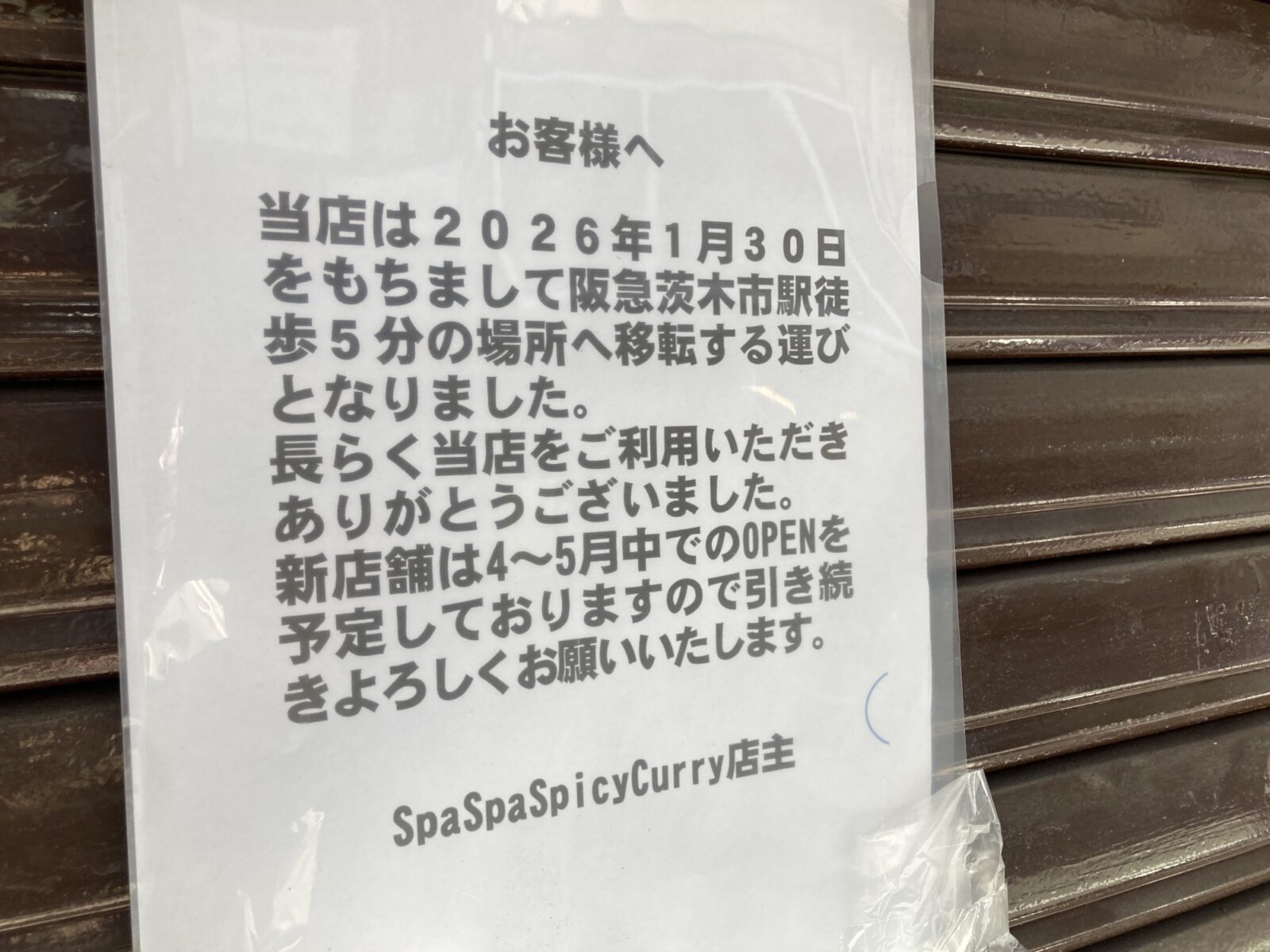 十三でカレーといえばココだったのに!あのカレーがもう食べれないなんて!という方、ご安心ください!完全閉店という訳ではなく、2026年4月下旬頃に、阪急茨木市駅東口側への移転を予定されているそうです。