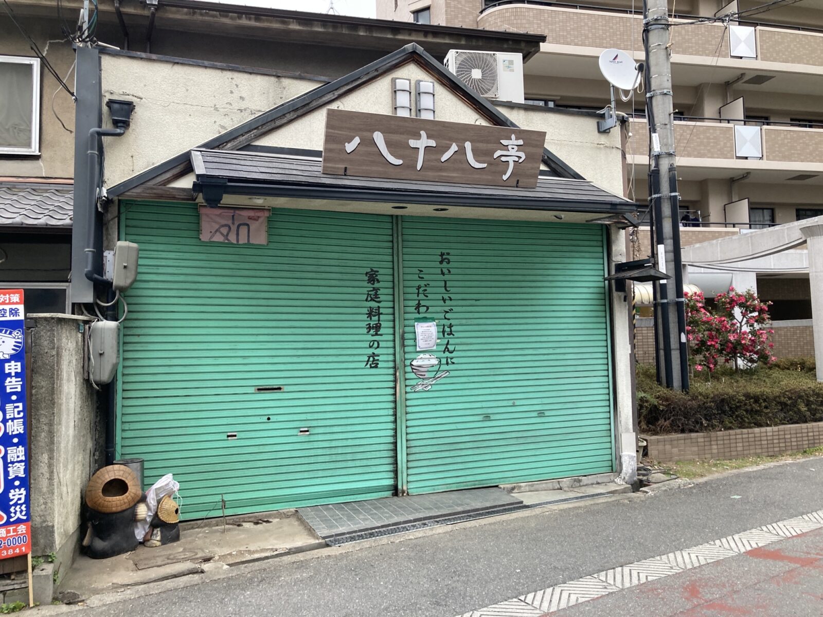 木川西2丁目、淀川通り沿いの定食屋「八十八亭(やそはちてい)」さんが2025年12月26日(金)の営業をもって閉店されています。店舗前には閉店をアナウンスするフライヤーが掲示されています。