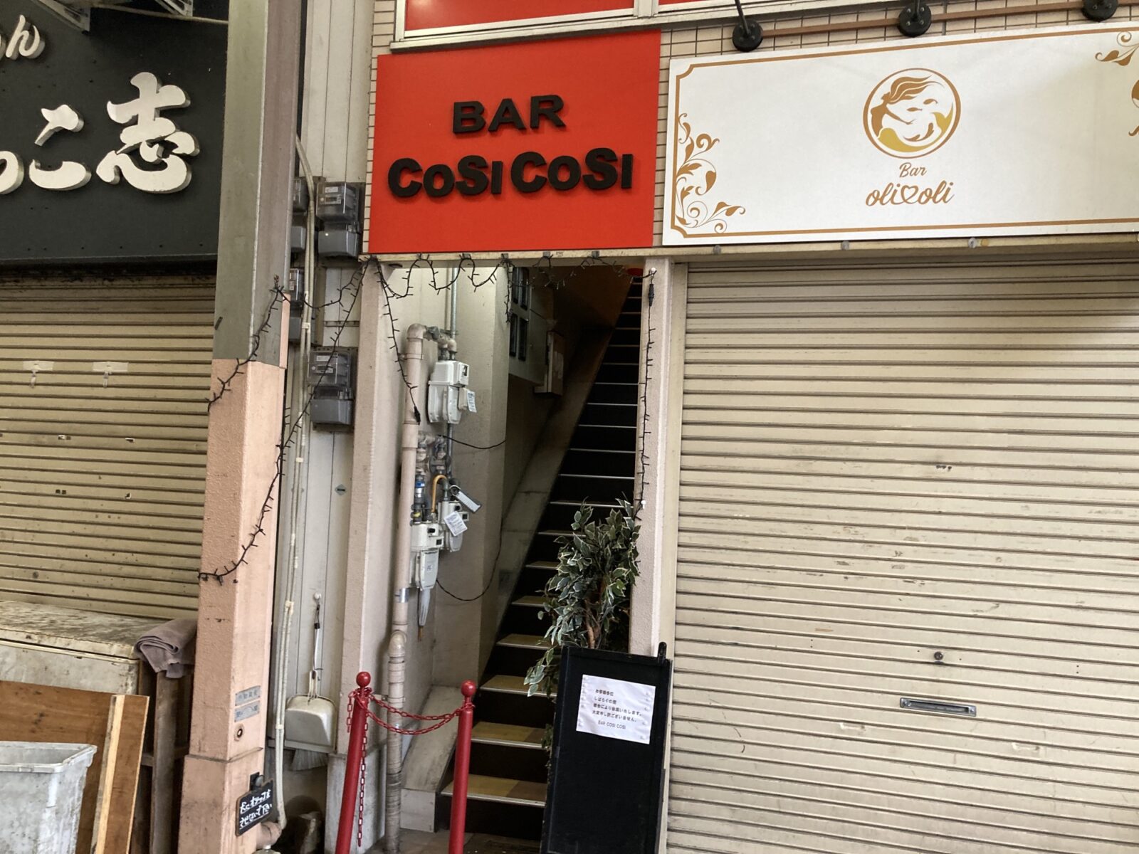 十三東駅前商店街のアーケード内にあるBAR「BAR COSI COSI(バーコズィコズィ)」が休業されているようです。