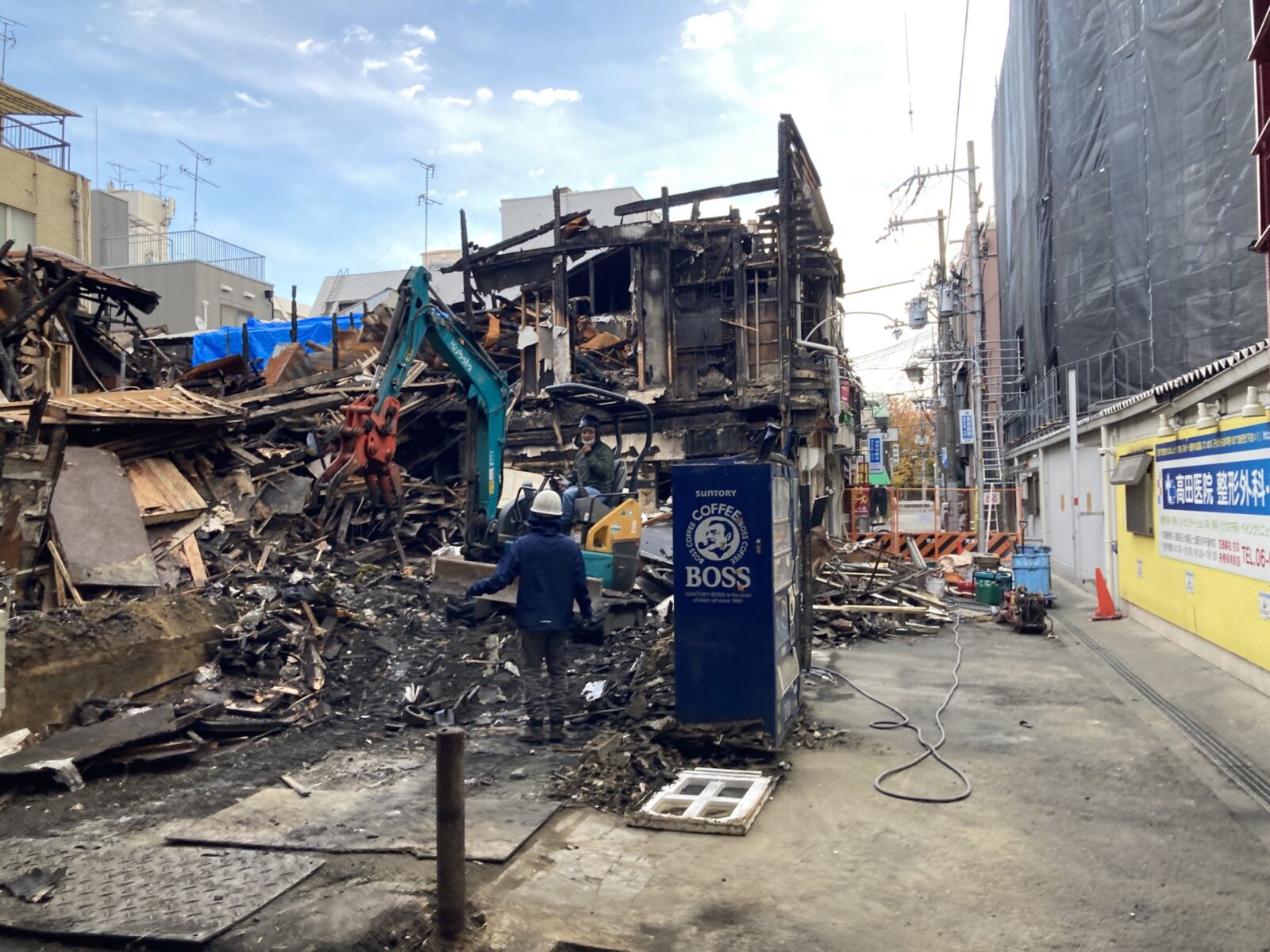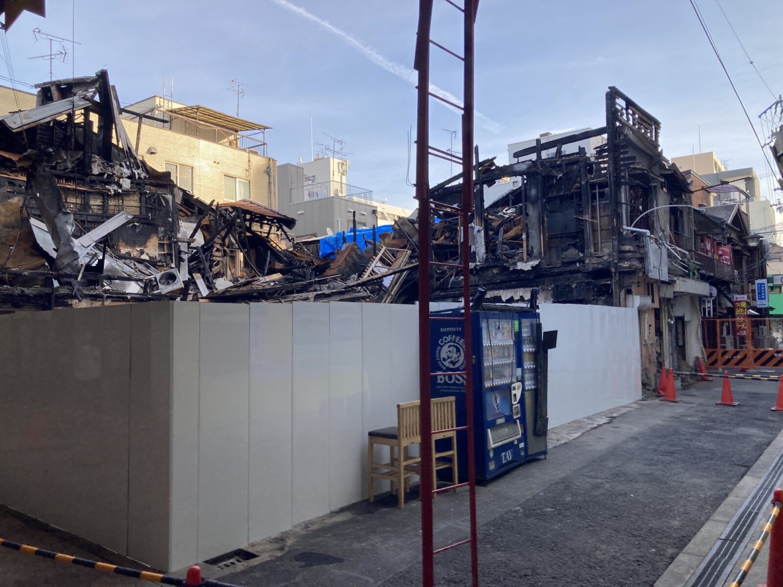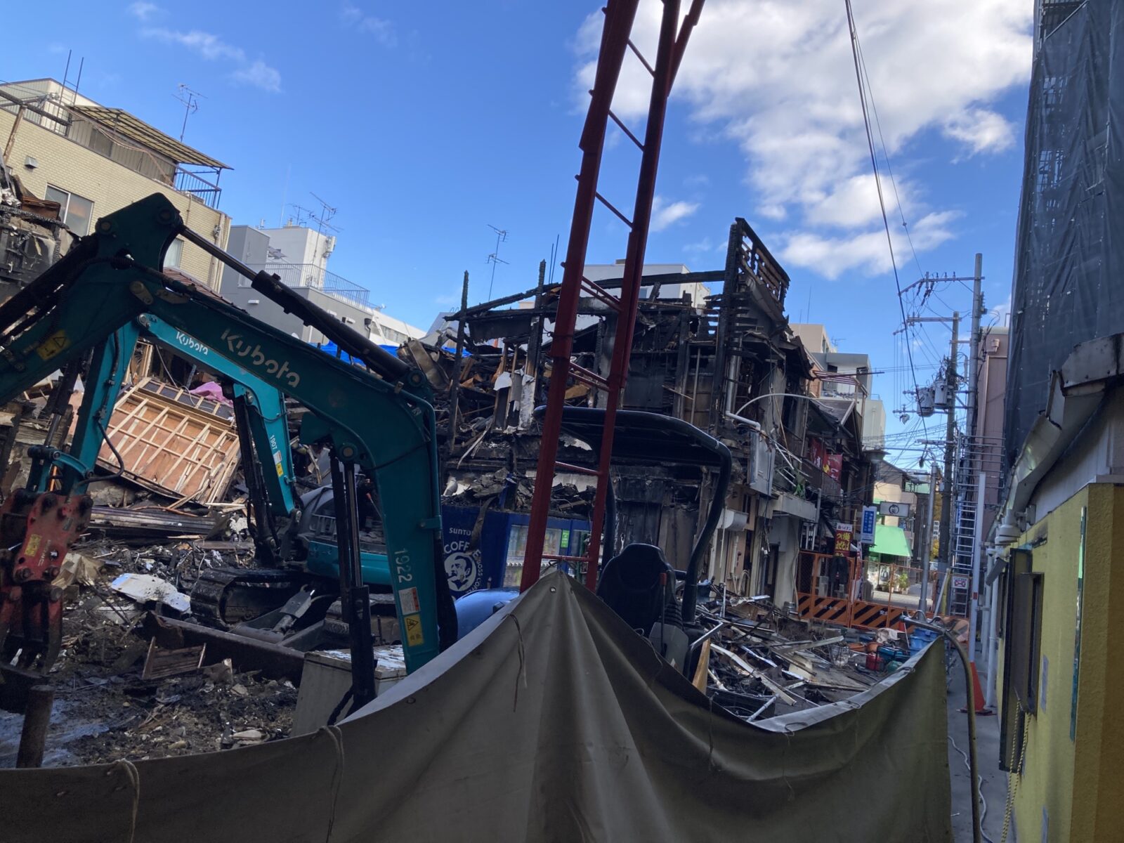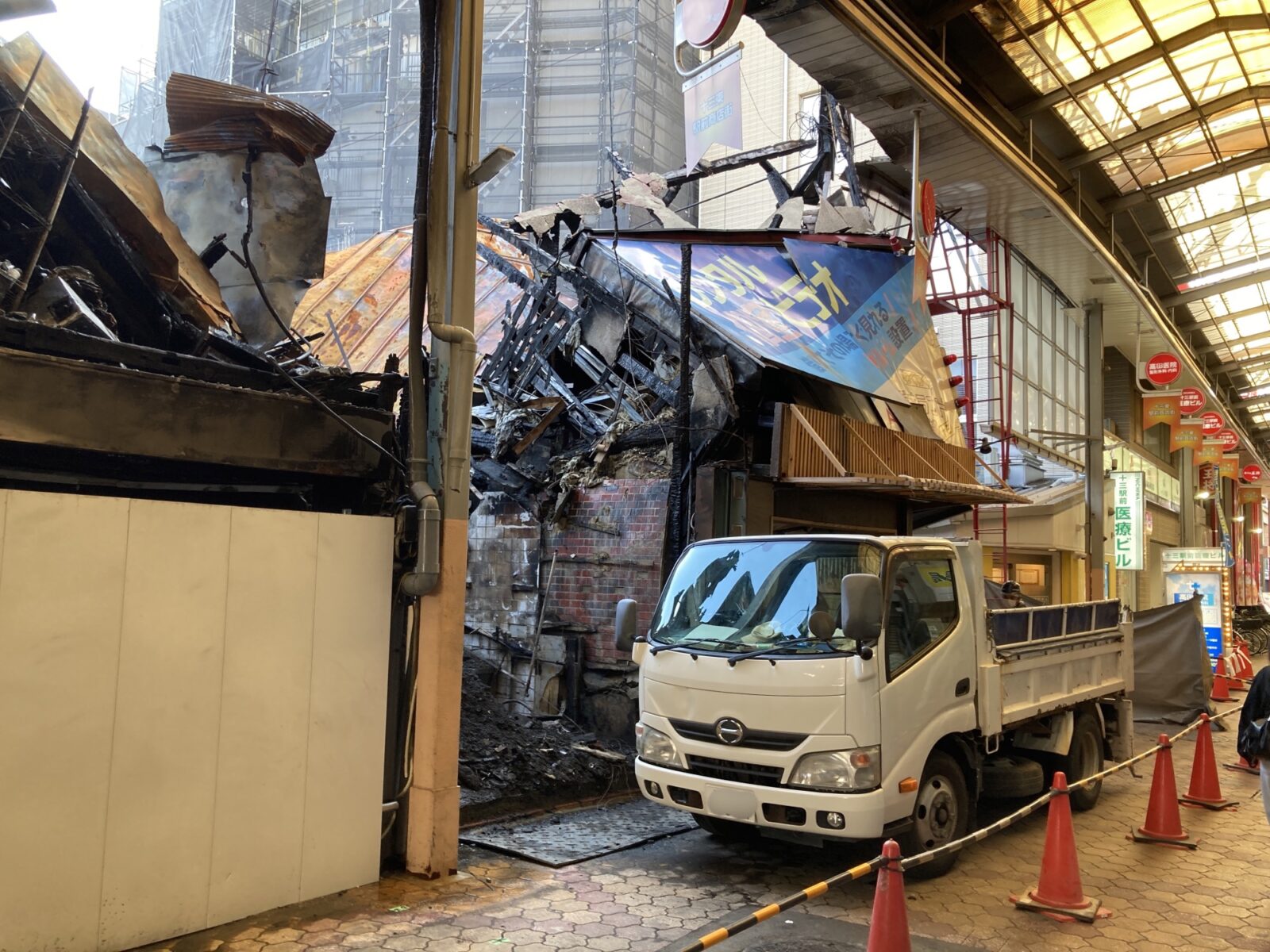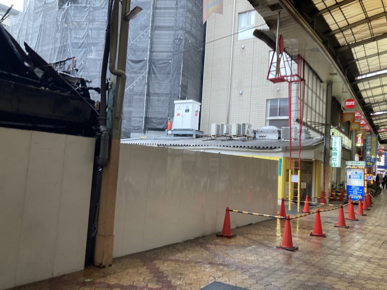 いつになったらこのアーケード内のガレキが撤去されるんだろう?と気になっていた方も多いこの火災跡地、最近になってようやく動きがありました!