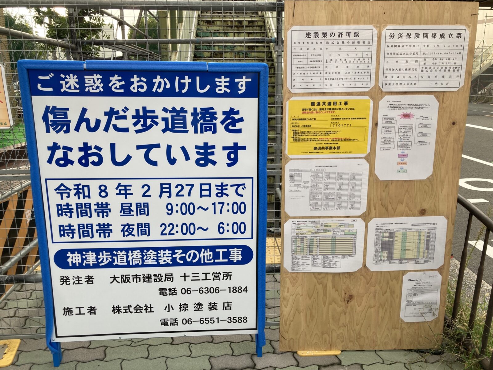 工事期間は〜2026年2月27日までを予定、傷んだ歩道橋を修復しつつ、塗装も綺麗に塗り替えられる様ですので、少し期間はかかりますが気長にお待ち頂ければと思います!
