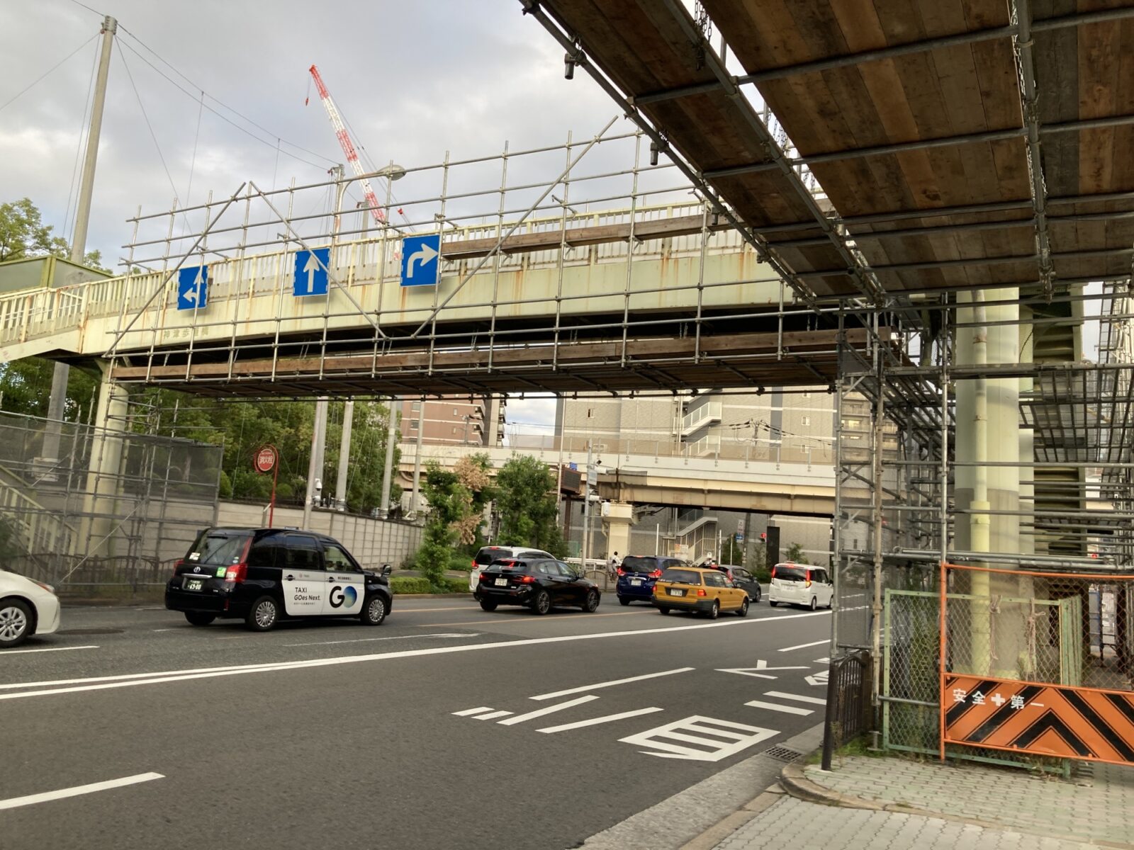 十三元今里2丁目、十三筋沿いの淀川郵便局前にある「神津歩道橋」が修繕工事のため、現在利用することができなくなっている様です。