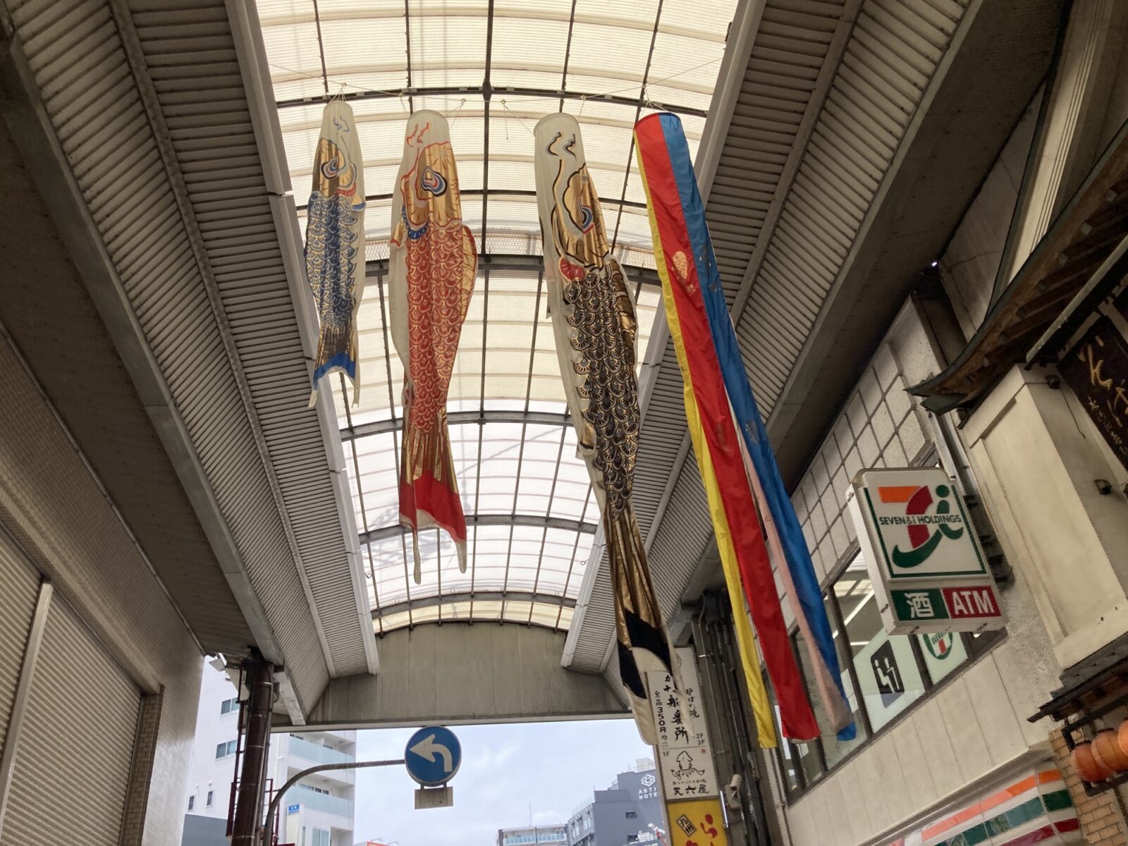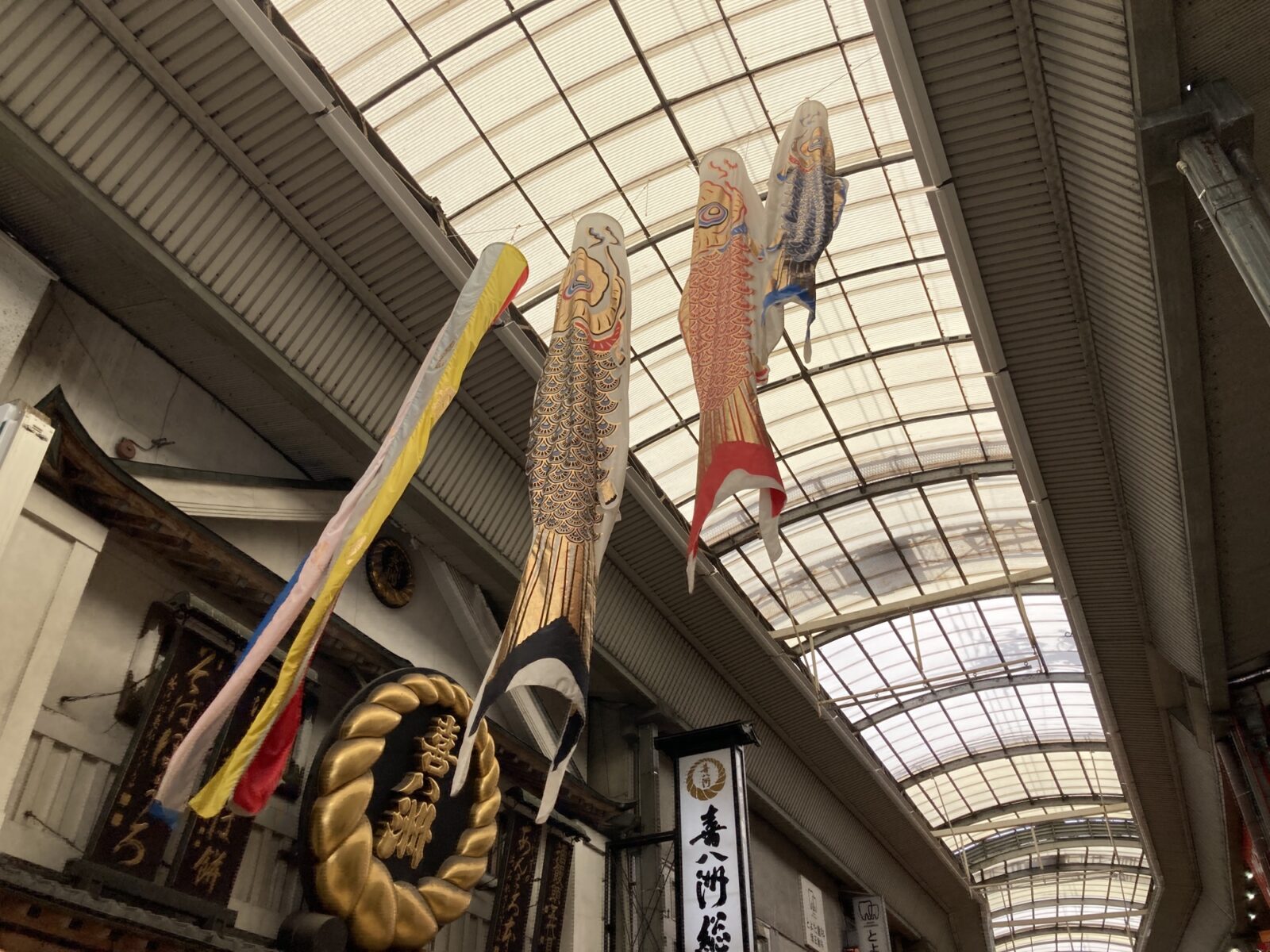特に特徴的なのが、その“サイズ感”。一般家庭で見かける鯉のぼりとは一線を画す大きさで、商店街のアーケードを横断するように設置されているため、迫力は抜群。風が吹くたびにダイナミックに揺れ動く姿は、まるで本当に空を泳いでいるかのようです。