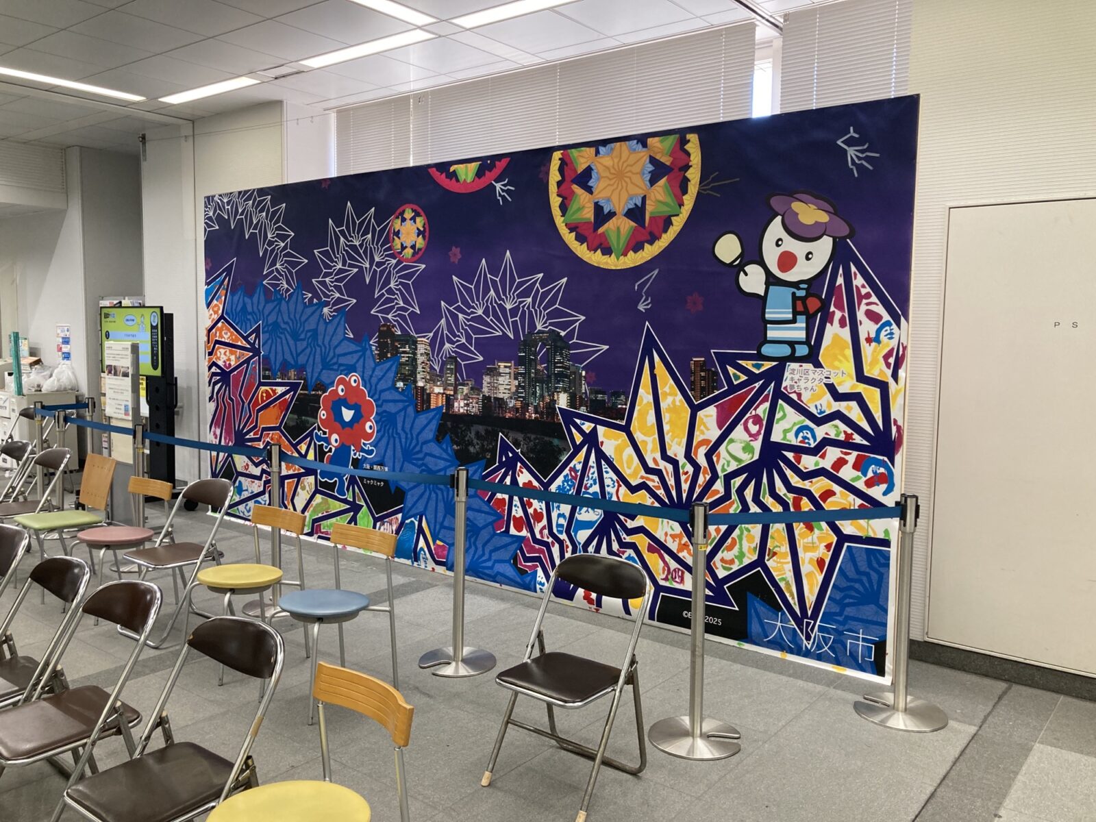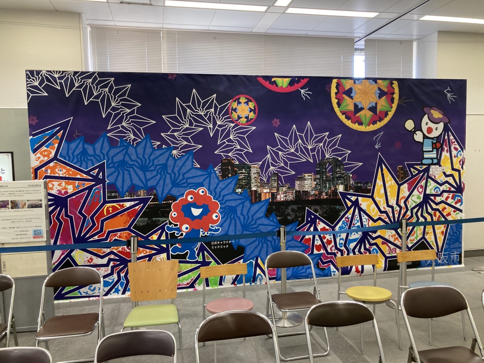 そしてこちらの「ライブペインティング」にて作成されたアート作品、現在、淀川区役所内の1階展示スペースにて公開されているんです。誰もが気軽に、万博の思い出と圧巻のライブ感が感じられるアート作品を間近で見られるという、またとない機会になっていますよ!