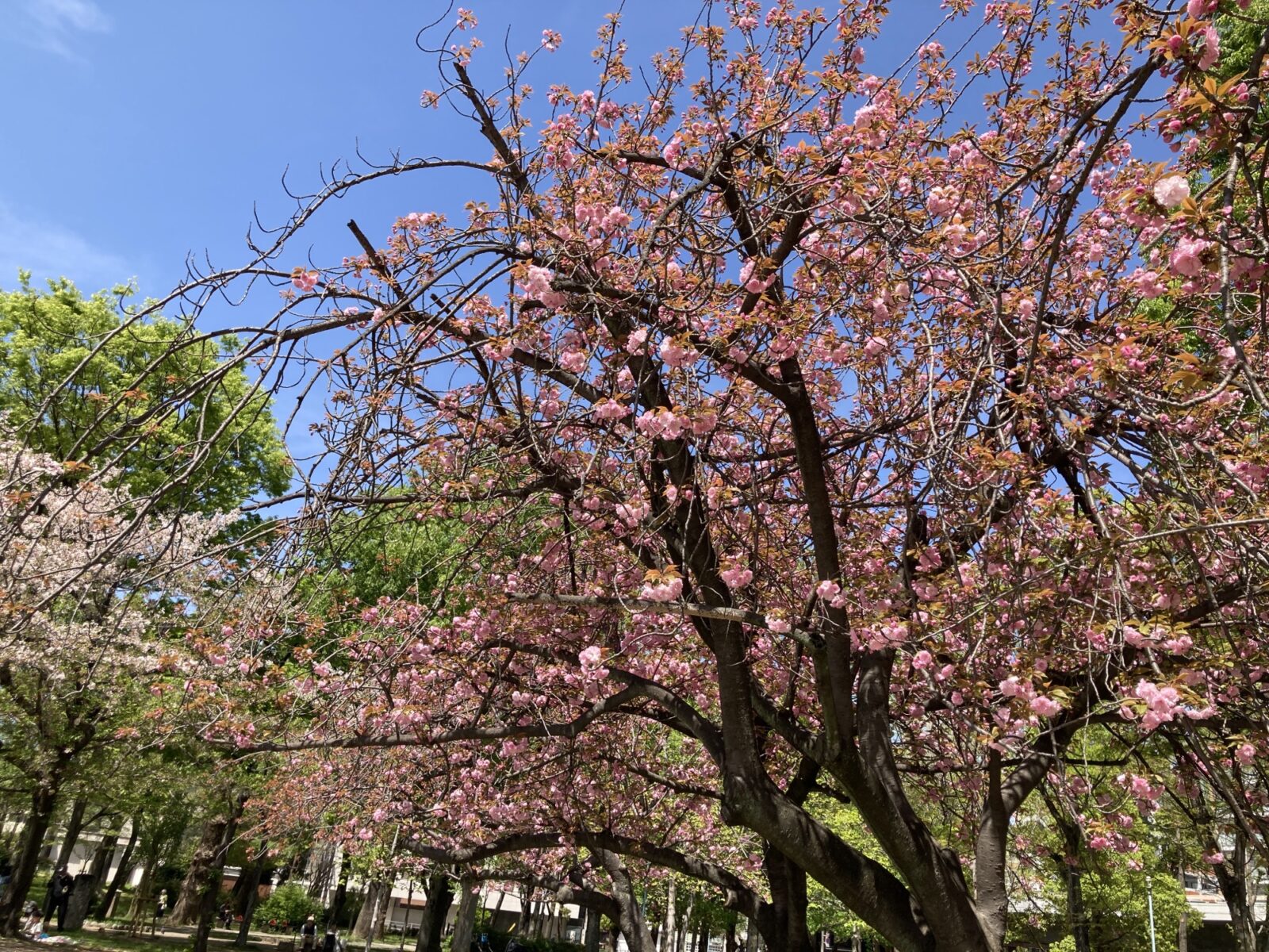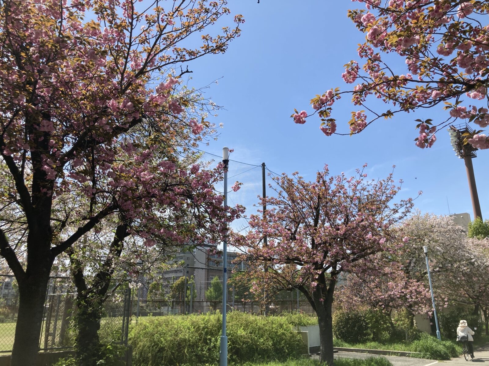 慌ただしかった4月前半を駆け抜け、少しホッと一息つきたいこの季節。十三公園に咲く、ぽってりと愛らしい八重桜は、私たちの心を優しく癒やしてくれます。