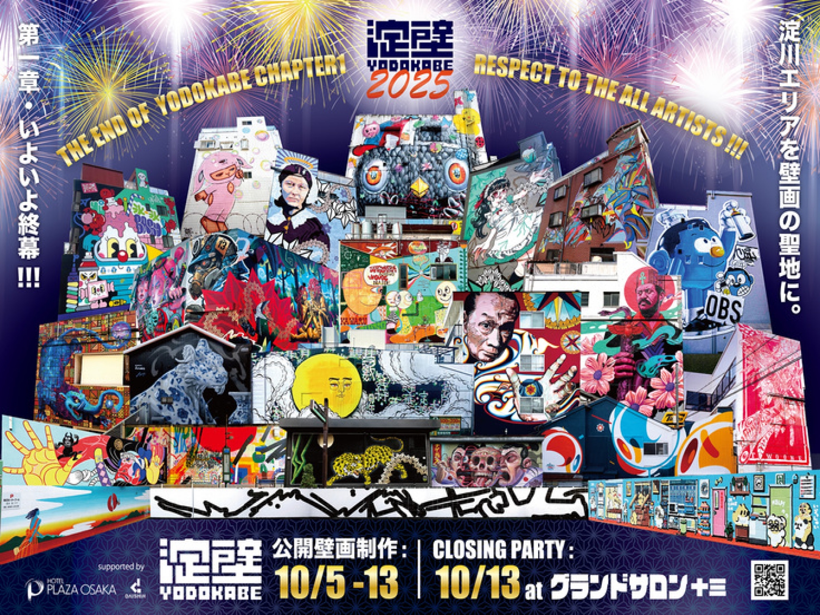 淀川区エリアの町中を表現の場として壁画のある街にしたいとの思いから発足されたアートプロジェクト「淀壁(よどかべ)」。2025年度の活動プロジェクトとして、2025年10月5日(土)~13日(月)の期間にて、新たに6箇所のエリアを舞台にウォールアートの制作が行われました!